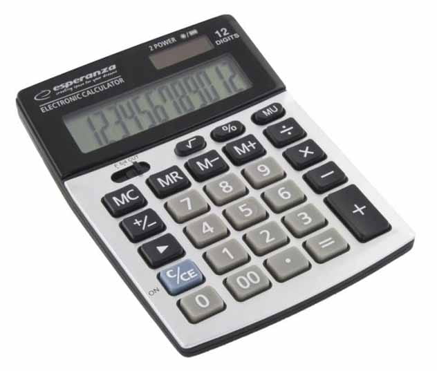 Posiada wszystkie najpotrzebniejsze funkcje matematyczne (dodawanie, odejmowanie, mnożenie, dzielenie, pierwiastkowanie, obliczanie procentów), funkcję cofania wpisywanych cyfr oraz możliwość zapamiętywania wyników. Pochylony wyświetlacz, duże wyświetlane cyfry oraz duże klawisze ułatwiają pracę z kalkulatorem. Idealny do codziennego użytku w sklepach i biurach, oraz w domu.