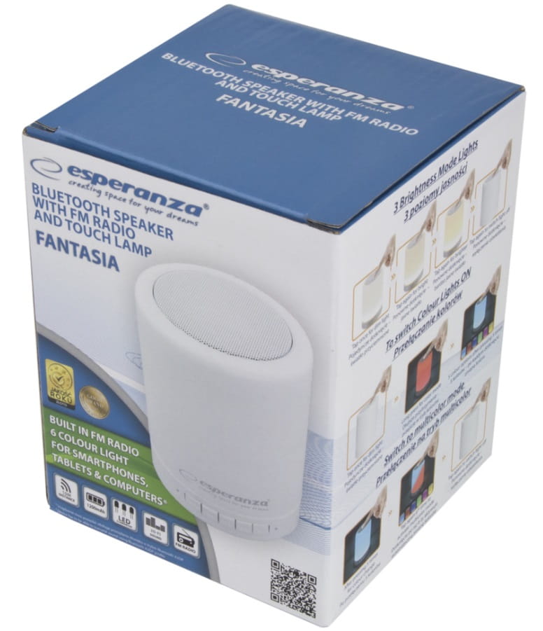 Głośnik bezprzewodowy Bluetooth LED FM Kolorowy RGB RadioGłośnik bezprzewodowy - multicolor!Chcesz zabrać swoją muzykę wszędzie ze sobą, delektując się świetnym designem i czystym dźwiękiem? Na te wszystkie zapotrzebowania odpowiada głośnik bezprzewodowy bluetooth! Ciekawy design, doskonała jakość dźwięku i niezawodność. Wybierz sprawdzone rozwiązania od firmy z wieloletnim doświadczeniem na rynku. Muzyka zawsze pod rękąGłośnik firmy Esperanza zaprojektowany został tak, aby móc zabrać go ze sobą wszędzie. Dzięki temu jego waga została ograniczona do minimum, jest lekki i przenośny, przez co doskonale sprawdzi się w podróży. Dodatkowo wyróżnia się wyjątkowo solidną konstrukcją, dlatego nie straszne mu przenoszenie go w plecaku. Sprawdzi się idealnie jako towarzysz każdej naszej podróży! Multicolor - głośnik dla wymagającychGłośnik wyposażony został w kolorową lampkę RGB. Zmiana trybów świecenia odbywa się przez dotknięcie głośnika palcem. Do wyboru jest:
