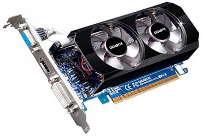 Karta graficzna GIGABYTE GeForce GT430 1GB DDR3 128BitNvidia geforce GT 430 karta graficzna!Karta graficzna nvidia geforce GT 430 oparta jest na chipsecie GeForce GT 430 od firmy nVidia. Obsługuje magistralę PCI Express 2.0, która oferuje przyszłościowe rozwiązanie dla najbardziej wymagających gier i aplikacji 3D poprzez maksymalne zwiększenie do 5GT/s przepustowości magistrali PCI Express 2.0 (dwa razy większe niż w pierwszej generacji magistrali PCI Express). Magistrala PCI Express 2.0 jest w pełni kompatybilna z wcześniejszymi rozwiązaniami istniejących magistrali PCI Express. Karta oferuje obsługę złącza HDMI dostarczając możliwość odbioru cyfrowego. Obsługiwane technologie:NVIDIA® PhysX ™ to kolejna wielka rzecz w grach! Dostarczanie fizyki w grach nie jest łatwym zadaniem. Jest to środowisko bardzo intensywnie obliczające oparte na unikalnym zestawie algorytmów fizyki, które wymagają ogromnych ilości równoczesnych obliczeń matematycznych i logicznych. Najlepszym sposobem na uzyskanie fizyki w czasie rzeczywistym, takiej jak eksplozje, które powodują kurz i gruz, postacie o ruchach przypominających życie lub tkaniny, które drapią i łzawią naturalnie, jest procesor GeForce® NVIDIA®PhysX ™. Oprogramowanie PhysX jest szeroko stosowane w ponad 150 grach, jest używane przez ponad 10 000 zarejestrowanych użytkowników i jest obsługiwane przez Sony Playstation 3, Microsoft Xbox 360, Nintendo Wii i PC. Technologia PhysX ™ przeniesie grę na zupełnie nowy poziom.Karta graficzna nvidia geforce gt 430NVIDIA® CUDA ™ to architektura obliczeń równoległych ogólnego przeznaczenia, która wykorzystuje równoległy silnik obliczeniowy w procesorach graficznych NVIDIA (GPU) do rozwiązywania wielu złożonych problemów obliczeniowych. Odblokowuje moc setek rdzeni procesora graficznego NVIDIA® GeForce®, aby przyspieszyć niektóre z najbardziej wydajnych aplikacji obliczeniowych. Od transkodowania wideo do "Folding®home", technologii CUDA ™ już przyjętej przez tysiące programistów, aby przyspieszyć intensywne aplikacje komputerowe. Dzięki ponad 100 milionom procesorów graficznych obsługujących CUDA, tysiące programistów używa już darmowych narzędzi programowych CUDA do przyspieszania aplikacji.Specyfikacja:Wsparcie: DirectX 11