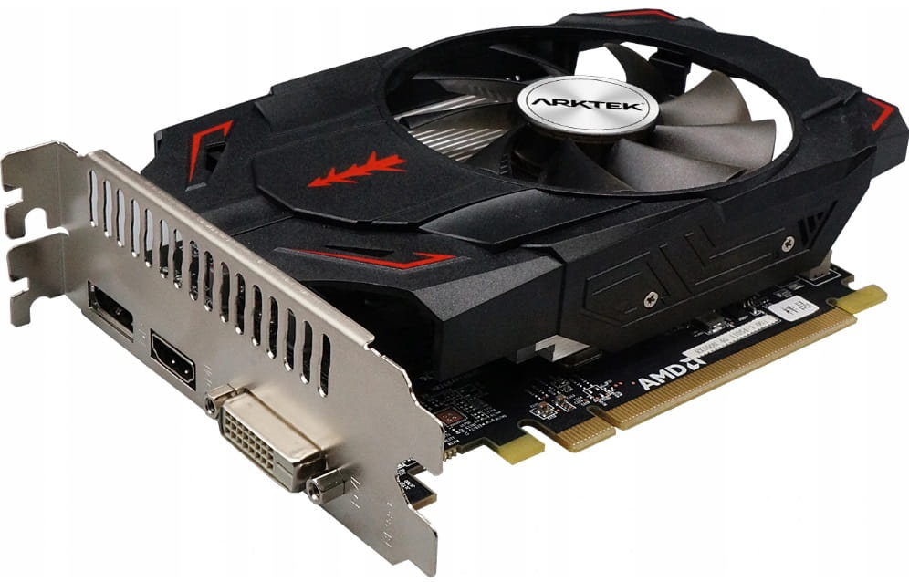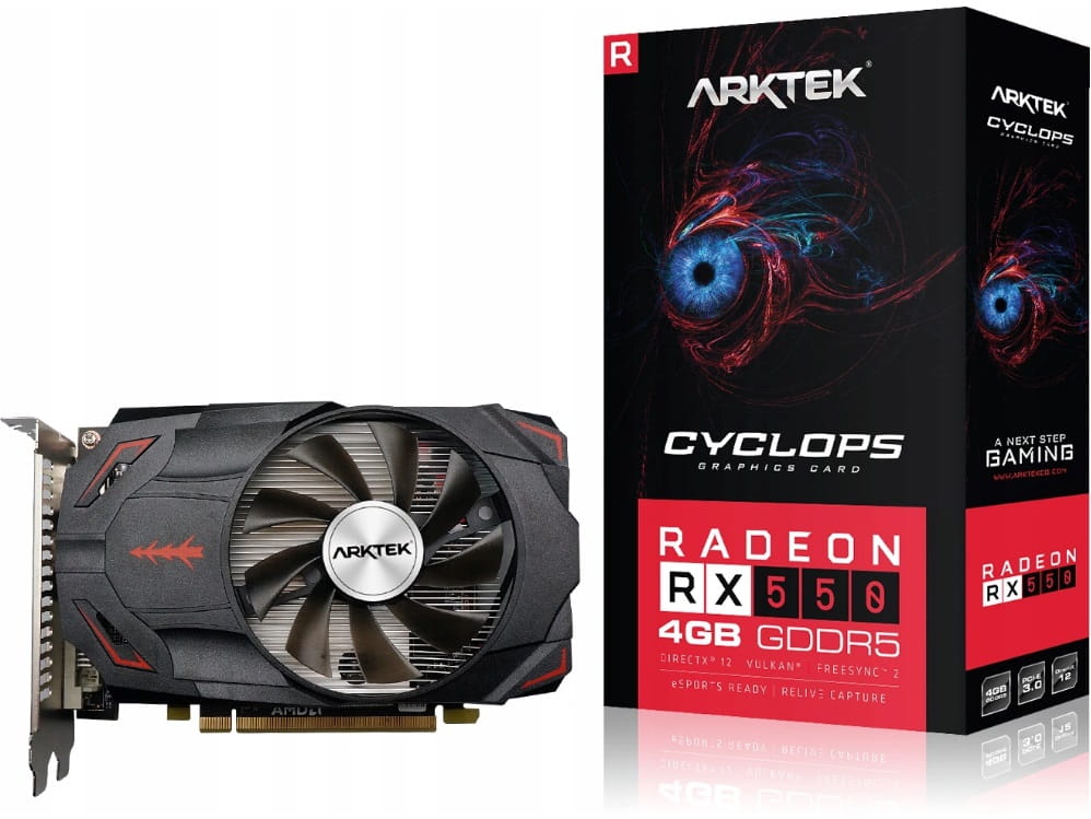 Karta graficzna Arktek RX550 4GB Radeon GDDR5Radeon RX 550 - topowa karta graficzna AMD PolarisRadeon RX 550 zapewni bardzo dobre parametry do najpopularniejszych gier, ale też do oglądania filmów w wysokiej rozdzielczości, do montażu wideo, streamingu i wielu innych zadań. Zgodność z DirectX12 oraz Shader Model 5.0 zapewnia kompatybilność i bezproblemowe odwzorowanie grafiki w grach oraz wysoką płynność rozgrywki. Jednostka RX 550 dysponuje nawet 4GB pamięci RAM GDDR5 i bazuje na dopracowanej architekturze Polaris 20, dzięki czemu oferuje jeszcze wyższą wydajność. 4GB pamięci RAM GDDR5Przenieś się w świat cyfrowej rozrywki z kartą graficzną wyposażoną w 4GB pamięci GDDR5. Ciesz się ponadprzeciętną jakością i płynnością wyświetlanego obrazu dzięki trzykrotnie wyższej wydajności GDDR5 i znacznie mniejszemu zapotrzebowaniu na energię niż w poprzedniej wersji. Edytuj zdjęcia, pracuj w zaawansowanych aplikacjach, oglądaj filmy w 4K i ciesz się dynamiczną rozgrywką na najwyższym poziomie. Z 4GB pamięci GDDR5 zapomnisz o frustrujących przycięciach i klatkowaniu obrazu! Aktywny układ chłodzeniaUkład aktywnego chłodzenia karty graficznej składa się z zestawu radiatora oraz wentylatora (jednego lub więcej). Radiator odbiera ciepło z rdzenia graficznego oraz rozprasza je dzięki dziesiątkom cienkich blaszek. Z kolei wentylator ma za zadanie skutecznie schłodzić radiator. Taki zestaw idealnie się uzupełnia i w większości przypadków oferuje najbardziej optymalne chłodzenie karty graficznej. Zapewnia dobry kompromis między niską emisją hałasu, a wysoką wydajnością, ponieważ prędkość wentylatora jest zależna od aktualnego obciążenia układu graficznego: kiedy jest ono niskie wentylator obraca się niemal bezgłośnie. W momencie wzrostu obciążenia prędkość wentylatora również wzrasta, zapewniając wydajne chłodzenie całego układu. VR ReadyZachwyć się możliwościami oferowanymi przez technologię Virtual Reality (VR). Zmień sposób grania i stań się pełnoprawnym uczestnikiem toczonej batalii, trafiając w sam środek akcji dzięki prawdziwemu 3D. Poruszaj głową, aby zmienić widziany obraz, nawiązuj interakcje za pomocą gestów, oddaj się niezapomnianej rozrywce na najwyższym poziomie. Dzięki technologi VR Ready otrzymujesz doskonałą jakość obrazu, płynność i dynamikę, o jakiej niedawno można było jedynie marzyć. Nowy interfejs VulkanVulkan API ma obniżony narzut sterowania, a więc wymaga mniejszej mocy obliczeniowej procesora głównego do wykonania tych samych zadań, posiada też lepsze skalowanie w wielordzeniowych procesorach. DisplayPortNa pokładzie prezentowanej karty graficznej nie mogło zabraknąć uniwersalnego interfejsu cyfrowego DisplayPort, dzięki któremu podłączysz do komputera nie tylko monitor, ale również system kina domowego. HDMIPodłącz komputer do telewizora, projektora lub wielkoformatowego wyświetlacza i odtwarzaj obraz o doskonałej jakości wszędzie, gdzie tylko chcesz. Złącze HDMI przesyła nieskompresowany cyfrowy sygnał audio oraz wideo i pozwala na transmitowanie 8 kanałowego dźwięku z próbkowaniem 192 kHz. Specyfikacja:Chipset | |