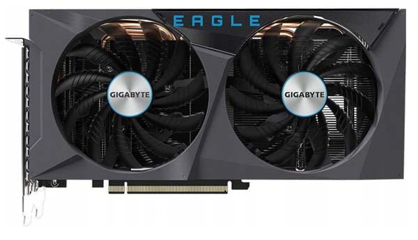GIGABYTE GeForce RTX 3060 EAGLE OC 12GB Gigabyte GeForce RTX 3060 EAGLE Minimalistyczna i wyjątkowo wydajna karta graficzna Gigabyte GeForce RTX 3060 EAGLE pozwoli Ci wzlecieć na wyżyny swoich możliwości. Dzięki wykorzystaniu architektury NVIDIA Ampere umożliwia płynny gaming przy wysokiej liczbie detali oraz FPS, a także wspiera nowatorskie technologie takich jak Ray Tracing czy DLSS. Wydajne chłodzenie WINDFORCE 2X zadba o optymalne temperatury pracy, a podświetlenie RGB Fusion 2.0 pozwoli nadać karcie bardziej osobistego charakteru. Karty graficzne LHR (Lite Hash Rate) sprzętowo ograniczają wydajność kopania kryptowaluty Ethereum. Układ chłodzenia WINDFORCE 2XGigabyte GeForce RTX 3060 EAGLE wykorzystuje wydajny system chłodzenia WINDFORCE 2X. Składają się na niego dwa wentylatory o średnicy 100 mm i unikalnym kształcie łopatek. Przeciwny kierunek obrotu redukuje turbulencje powietrza. Przy niskim obciążeniu GPU wentylatory wyłączają się, by pozwolić Ci pracować w ciszy. Pod wentylatorami znajduje się masywny radiator z zatopionymi w nim 4 ciepłowodami przylegającymi bezpośrednio do układu graficznego. Dodatkowa metalowa płytka przylega również do pamięci VRAM, by zapewnić im lepsze chłodzenie. Konstrukcję Gigabyte GeForce RTX 3060 EAGLE domyka usztywniający backplate z dodatkowymi otworami poprawiającymi wentylację. Specyfikacja: