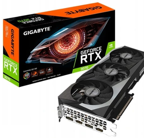Karta graficzna Gigabyte RTX 3070 OC 8GB GDDR6Cicha, mega wydajna z podświetlanym logo i FABRYCZNIE PODKRĘCONA. Szybsza od innych RTXów 3070!Karta graficzna Gigabyte GeForce RTX 3070 OC 8GB zaoferuje Ci nowatorskie rozwiązania z zakresu generowania grafiki oraz bezkompromisową wydajność. Naciesz oczy fotorealistyczną grafiką dzięki technologii Ray Tracing oraz graj w najnowsze produkcje z niespotykaną płynnością. O kulturę pracy dba TRÓJWENTYLATOROWY układ chłodzenia Windforce 3X. Nawet 4 lata gwarancji!Zarejestruj swój zakup u producenta w ciągu 30 dni od zakupu, a otrzymasz dodatkową gwarancję producenta. Trzy wentylatory zapewnią cichą i wydajną pracę!GeForce RTX 3070 bazuje na architekturze Ampere, czyli na drugiej generacji architektury RTX NVIDII. W nowych chipach graficznych znalazły się ulepszone rdzenie RT i rdzenie Tensor a także nowe procesory strumieniowe. Karty zbudowane na bazie nowych układów korzystają z szybkiej pamięci GDDR6, co daje Ci potrzebną moc, która jest niezbędna w najbardziej wymagających grach. Ray TracingJeszcze bardziej realistyczna grafika w grach? Z technologią Real-time Ray Tracing wchodzącą w skład pakietu programistycznego GameWorks animacje w topowych produkcjach mają jeszcze lepszą jakość. Real-time Ray Tracing pozwala w czasie rzeczywistym renderować cienie i odbicia, odwzorowując różny stopień pochłaniania, odbijania i załamywania światła. Zaawansowane algorytmy śledzenia promieni uwzględniają materiały i źródła światła, sprawiając, że wyświetlany obraz jeszcze bardziej przypomina ten rzeczywisty. Wzmocniona mechanicznie konstrukcjaBackplate poprawia odprowadzanie ciepła oraz usztywnia kartę, kartę graficzną na całej jej długości. Nvidia DLSS 2.0: Nowość!DLSS 2.0 zawiera kilka kluczowych ulepszeń w stosunku do oryginalnej wersji: