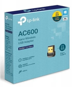 Karta sieciowa USB WiFi Archer T2U Nano 600 mb/sDwupasmowa karta sieciowa dla szybszych połączeń bezprzewodowychArcher T2U Nano obsługuje dwa oddzielne pasma Wi-Fi. Dzięki technologii 256QAM urządzenie zapewnia o 33% większą wydajność sieci - prędkość w paśmie 2,4GHz wynosi nie 150, a 200Mb/s. 433Mb/s w paśmie 5GHz to prędkość idealna do strumieniowania wideo w jakości HD i wrażliwych na opóźnienia gier online, podczas gdy 200Mb/s w paśmie 2,4GHz idealnie sprawdzi się do codziennego przeszukiwania sieci. Miniaturowy rozmiar - wepnij i zapomnijKarta sieciowa T2U Nano pasuje do każdego portu USB. Dzięki małym rozmiarom i przemyślanemu designowi urządzenia, możesz zostawiać je wpięte do portu – w domu i w podróży. Najważniejsze cechy: