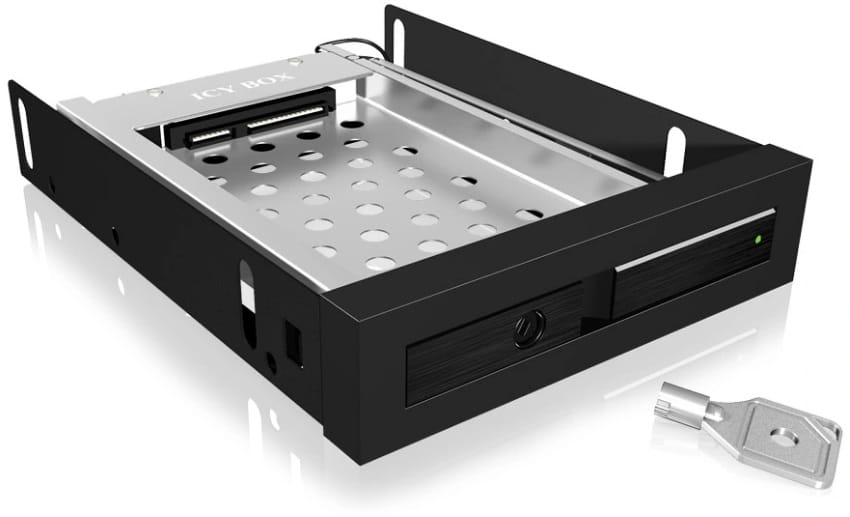 Kieszeń na dysk 2,5 cala HDD SSD SATA IIIMasz wolną wnękę w swoim komputerze na 3,5"? Możesz to miejsce wykorzystać na zamontowanie dodatkowe dysku 2,5"! Po umiejscowieniu kieszeni na dysk w miejscu wnęki, nie musisz już korzystać z dodatkowych narzędzi przy instalowaniu dysków. Kieszeń na dysk 2,5" to idealne rozwiązanie dla wymagających. Postaw na bezpieczeństwoKieszeń na dysk 2,5" wyposażone zostało w specjalne zabezpieczenie, które uniemożliwia usunięcie dysku nieupoważnionej do tego osobie. Kieszeń wyposażona została w specjalny kluczyk, który pozwala na otwieranie i zamykanie szufladki. Wysoka jakośćKieszeń dysku 2,5" wykonana została z najwyżej jakości materiałów, główny materiał stanowi metal, a przedni panel wykonany został z aluminium. Zastosowanie takich materiałów pozwoliło na zapewnienie doskonałej przewodności cieplnej. Specyfikacja