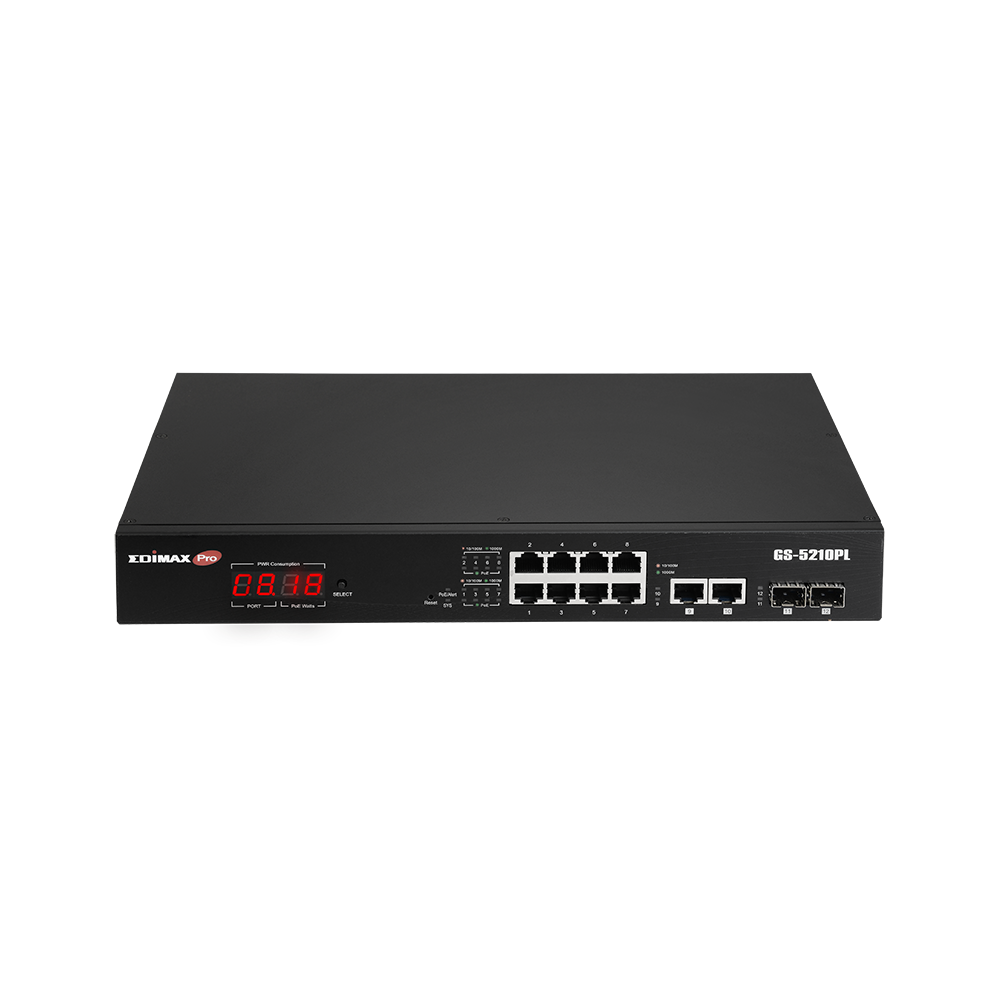 12-portowy gigabitowy przełącznik PoE+ Web Smart z 2 gigabitowymi portami Combo RJ45/SFP