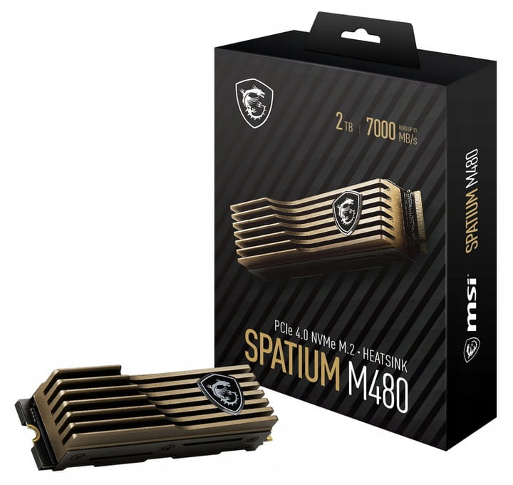 Dysk SSD MSI Spatium M480 HS wyposażony jest w brązowy, aluminiowy radiator z ułożonymi w stos żeberkami i elementami chłodzącymi, które skutecznie odprowadzają ciepło i pozwalają dyskowi utrzymać maksymalną wydajność przy dużym obciążeniu.