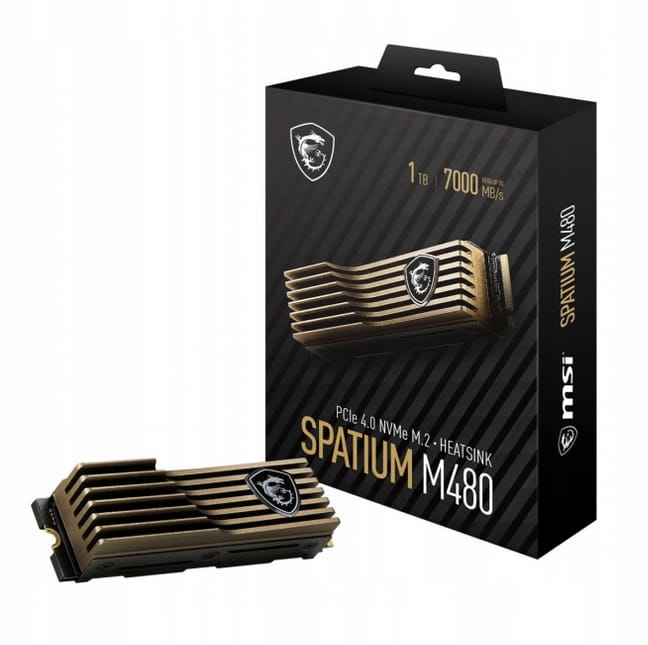 Dysk SSD MSI Spatium M480 HS wyposażony jest w brązowy, aluminiowy radiator z ułożonymi w stos żeberkami i elementami chłodzącymi, które skutecznie odprowadzają ciepło i pozwalają dyskowi utrzymać maksymalną wydajność przy dużym obciążeniu.
