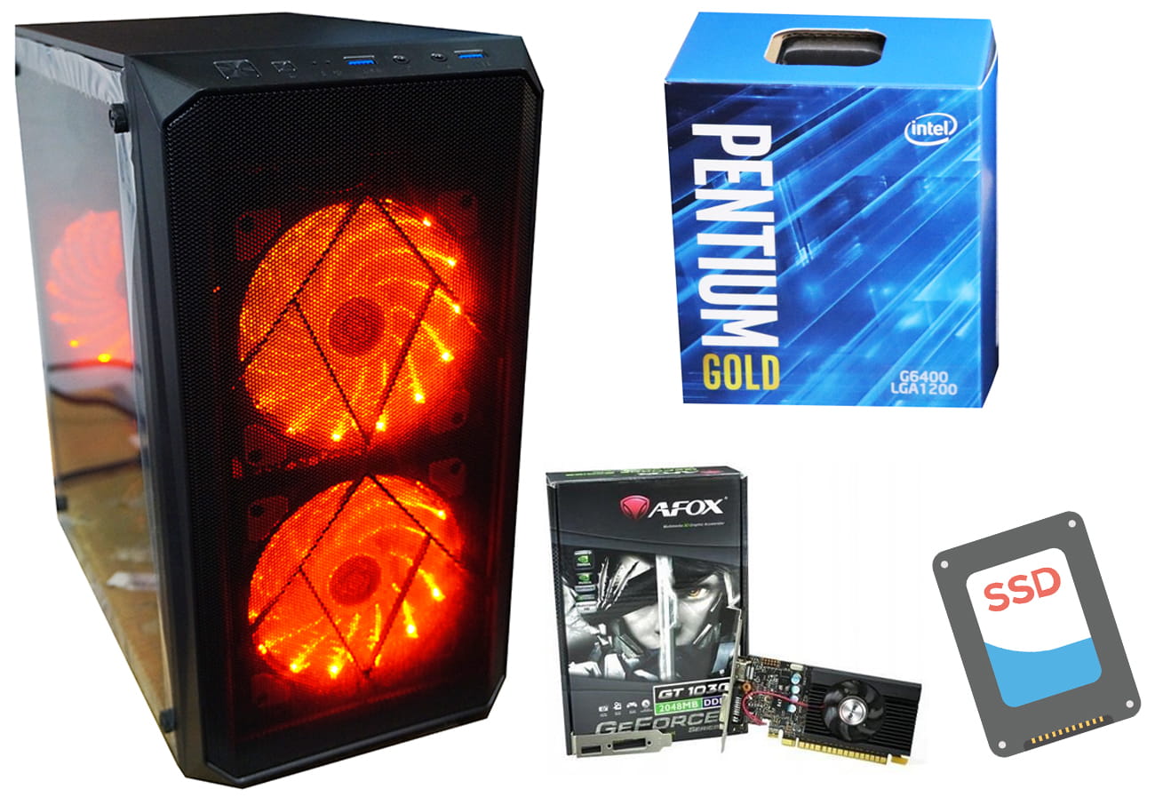 SPRAWDZONY SZYBKI WYDAJNY KOMPUTER DO GIER MOCNA KARTA GRAFICZNA AFOX GeForce GT1030 2GB LP Intel Pentium GOLD G6400 Gembird FORNAX 970R GT1030 G6400Wydajny komputer dla prawdziwego graczaRewolucja na rynku! Przedstawiamy komputer dla najbardziej zapalonych fanów elektronicznej rozgrywki! Już dziś wejdź do świata najnowszych gier z wydajnym procesorem, potężną kartą graficzną i ogromną ilością ramu! Ten komputer to jedyna w swoim rodzaju bestia która pozwoli ci na granie we wszystkie gry jakie tylko chcesz! Kompletnie zanurz się w świecie rozgrywki dzięki tej potęznej bestii!