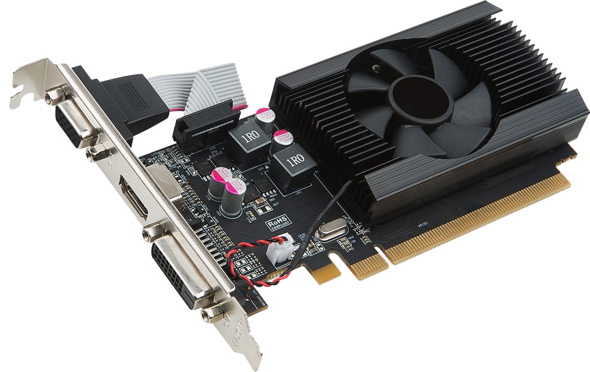 Karta Graficzna Nvidia GeForce GT1030Karty graficzne GeForce serii 10xx są najbardziej zaawansowanymi kartami, jakie kiedykolwiek stworzono. Odkryj bezprecedensową wydajność, energooszczędność oraz wrażenia jakie dostarczą gry nowej generacji. GT1030 jest w stanie obsługiwać 2 monitory oraz bezproblemowo dekodować wideo 4K! Karta graficzna GT1030 jest idealnym sprzętem do gier sprzętem do gier. Bez trudu osiągnie płynność na najwyższych ustawieniach w popularnych grach takich jak League Of Legends, Hearthstone, Dota 2 itp. Przy najbardziej wymagających grach klasy AAA trzeba się zadowolić ustawieniami niższymi niż maksymalne.