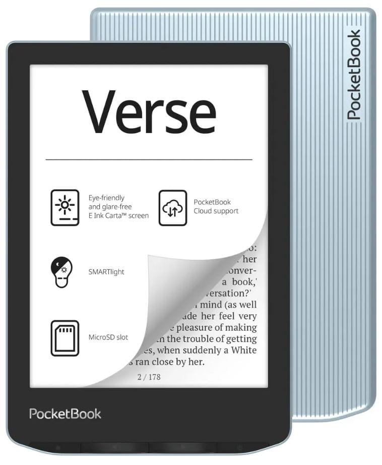 PocketBook Verse to prostota i funkcjonalność. Model zaprojektowano z myślą o osobach, które chcą wejść do świata e-książek lub już nie rozstają się z ebookami. Jest niewielki i lekki, ale wyposażony we wszystkie niezbędne funkcje, aby codzienna lektura była przyjemna. Nowa wzmocniona obudowa, podświetlenie SMARTlight i obsługa aplikacji abonamentowych znacząco poprawiają jakość codziennej lektury. Każdy, kto w wolnej chwili lubi czytać, z pewnością doceni najnowszy PocketBook Verse.