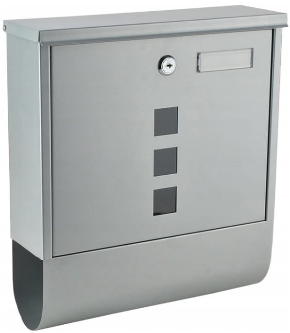 Dbałość o każdy detalSkrzynka na listy posiada zasłonięty wrzut, co sprawia, że jej wnętrze osłonięte jest przed działaniem czynników atmosferycznych. Jest to szczególnie istotne w przypadku klasycznych listów oraz pocztówek, które nie są odporne na działanie wody i mogłyby być zniszczone w przypadku kontaktu z wilgocią. Klapka osłaniającaKlapka osłaniająca osiada na dwóch gumowych podkładkach, co sprawia, że nawet swobodnie upuszczona nie powoduje nadmiernego hałasu i zagrożenia dla powierzchni skrzynki. Łatwo unoszona klapka posiada specjalnie wyprofilowaną krawędź, która usprawnia jej otwieranie. Dodatkowo powoduje to, że spływająca po skrzynce woda lub zacinający deszcz nie dostaje się do górnej szpary między drzwiczkami a skrzynką, a tym samym woda nie wpływa do środka. Otwory wentylacyjneW konstrukcji skrzynki znajdują się otwory wentylacyjne, które pozwalają na cyrkulację powietrza i samoczynne wyparowywanie nadmiernej wilgoci w sposób naturalny gromadzącej się i osadzającej na ściankach zamkniętych przedmiotów znajdujących się na zewnątrz. Otwierające się do przodu drzwiczki zamykane są na zamek z dźwignią zamykającą i otwierają się na tyle szeroko, aby pozwolić na łatwy dostęp do wnętrza skrzynki na listy, a tym samym sprawne wyciągnięcie z niej nawet większej korespondencji. Na górze drzwiczek umieszczone jest okienko adresowe, w które można włożyć numer lokalu bądź nazwę adresata. Dzięki trzem małym okienkom można natomiast bez otwierania zamka i drzwiczek sprawdzić, czy wewnątrz skrzynki znajduje się przesyłka. U podstawy skrzynki umiejscowiony jest otwór do pozostawiania gazet, gazetek reklamowych bądź ulotek. Bogaty zestawW zestawie znajdują się dwa klucze, dzięki czemu nie ma konieczności dorabiania dodatkowego egzemplarza, jeżeli ze skrzynki korzysta więcej niż jedna osoba. Skrzynka korespondencyjna posiada także specjalne otwory montażowe. Przy użyciu dostarczonych w komplecie kołków rozporowych oraz podkładek służących także jako dystanse, wystarczy przykręcić ją do powierzchni, na której ma być docelowo umieszczona. Gładka powierzchnia sprawia, że skrzynka jest łatwa w czyszczeniu i nie zbiera nadmiernie zanieczyszczeń w postaci opadającego kurzu lub pyłów. Klasyczna kolorystyka oraz ciekawy designerski kształt frontu skrzynki dobrze komponują się z każdego rodzaju powierzchnią, bez względu na jej strukturę oraz barwę. Specyfikacja