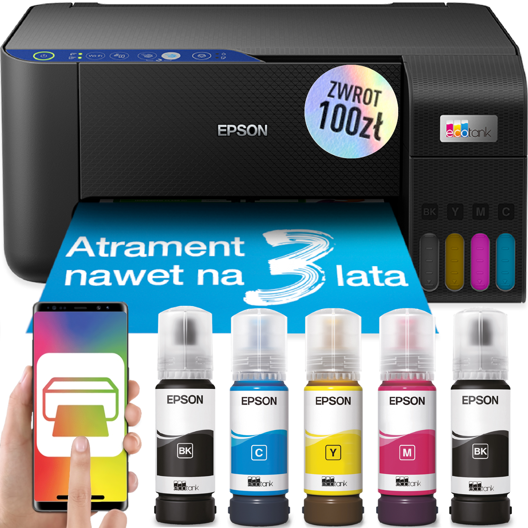 Urządzenie 3w1 (drukarka, skaner, kopiarka), nowa generacja napełniania atramentu (bez rozlewania i bałaganu), zapas atramentu na 3 lata (8100 stron czarnych i 6500 w kolorze), łącznośc WIFI system stałego zasilania w atrament, niezawodna głowica MicroPiezo, jedno z najmniejszych urządzeń w segmencie EcoTank.