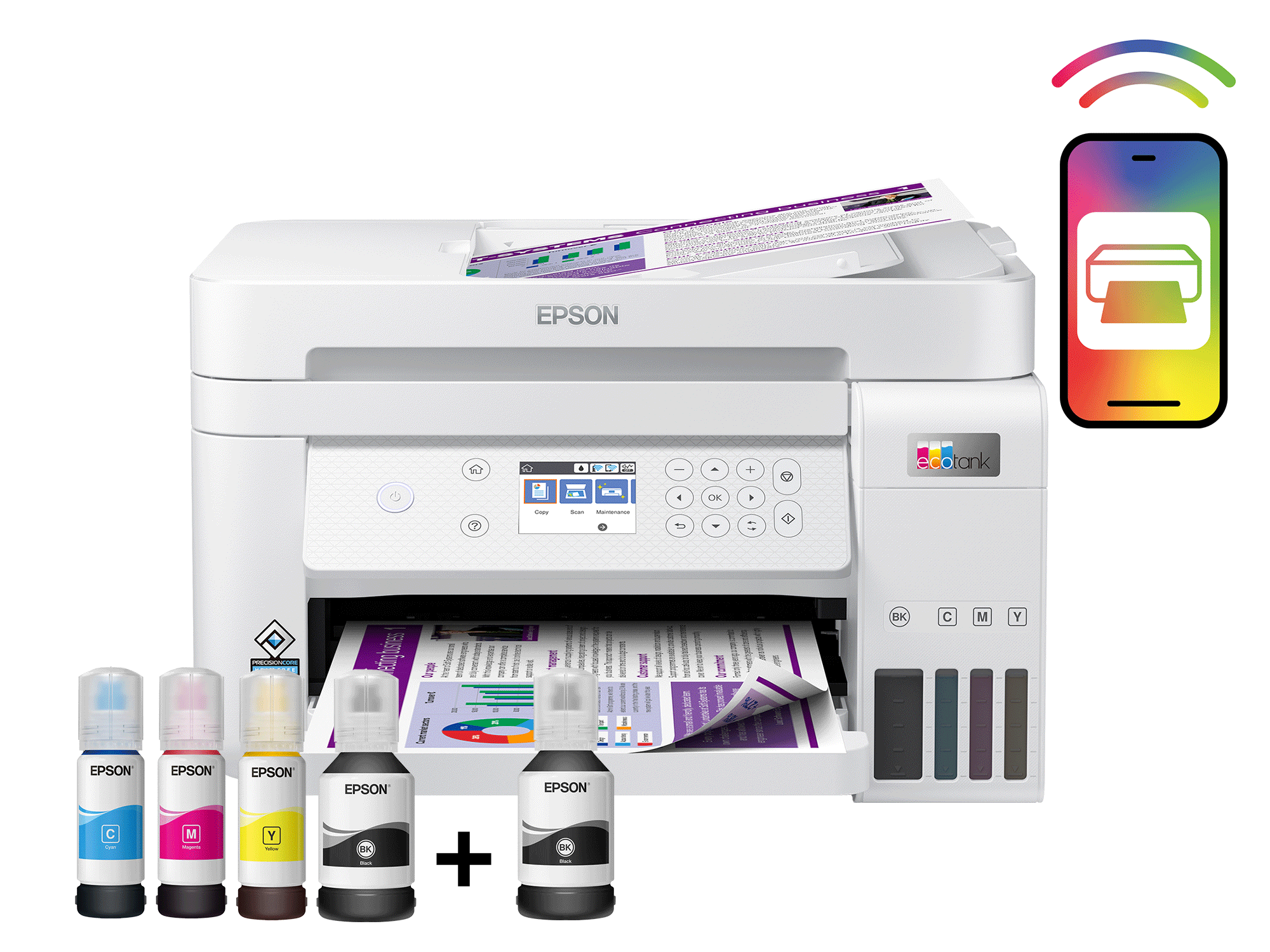 Oszczędzaj do 90% na kosztach druku dzięki drukarkom EcoTank bez kartridży firmy Epson. Wbudowane pojemniki na atrament są łatwe do napełniania dzięki specjalnie zaprojektowanym, wysoce wydajnym butelkom z atramentem. Ze względu na brak kartridży do wymiany, różnorodne opcje łączności i automatyczny podajnik dokumentów jest to idealna drukarka dla wszystkich osób wymagających wysokiej jakości druku przy nieprawdopodobnie niskim koszcie wydruku strony.