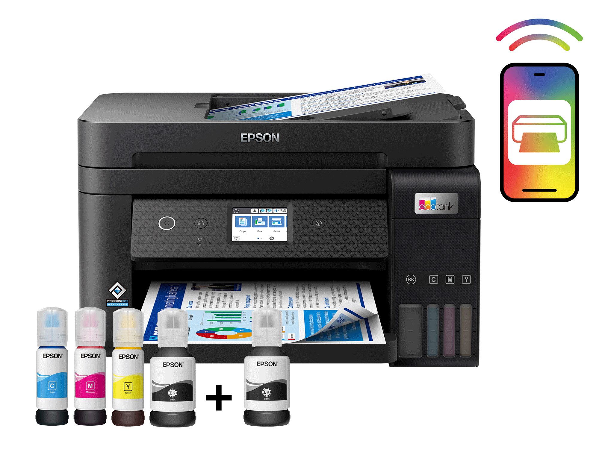 Oszczędzaj do 90% na kosztach druku1 dzięki drukarkom EcoTank bez kartridży firmy Epson. Wbudowane pojemniki na atrament są łatwe do napełniania dzięki specjalnie zaprojektowanym, wysoce wydajnym butelkom z atramentem. Ze względu na brak kartridży do wymiany, różnorodne opcje łączności i automatyczny podajnik dokumentów jest to idealna drukarka dla wszystkich osób wymagających wysokiej jakości druku przy nieprawdopodobnie niskim koszcie wydruku strony.